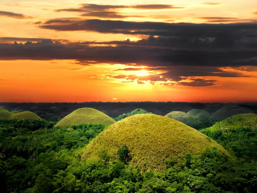 Get picked up from your hotel and catch an early ferry to Bohol for a day trip showcasing the island's wonders. Begin at the Philippine Tarsier Foundation in Corella, a sanctuary for the world's smallest primate, the tarsier. Marvel at these rare, nocturnal creatures in their natural habitat as they leap from tree to tree and swivel their heads nearly 360 degrees. Next, head to Baclayon for a brief stop at the historic Blood Compact site, where Spain's Miguel Lopez de Legazpi and local chieftain Datu Sikatuna sealed their friendship with a symbolic drink. In Baclayon, visit a centuries-old stone church with a museum that houses a collection of religious art, ecclesiastical vestments, and Latin librettos inscribed on animal skins. Continue the tour through the Bilar man-made forest, a dense growth of towering mahogany trees lining the highway to the Chocolate Hills, a geological marvel. From a distance, these hills resemble huge candy drops and change color with the season, appearing 'chocolate' brown in summer. Hike up to the viewpoint for a panoramic view of the area before proceeding to the Loboc River. Enjoy a relaxing cruise downstream on a floating restaurant, complete with a delicious lunch served on board. Return to Tagbilaran Pier for your ferry transfer back to Cebu.
