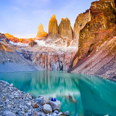 The goal of your fifth day of the 7-day Trek will be to complete the most famous trekking trail in Torres del Paine National Park! You will walk from the campsite towards Hostería Las Torres before ascending to Ascencio Valley on the Tower's eastern face. Mountain ridges, beech forests and small rivers line the scenic walk towards the valley. The big challenge comes in the form of the steep moraine, a huge mass of boulders which will lead us to that iconic base-view of the Towers - Three gigantic granite monoliths, the remains of a great cirque sheared away by the forces of glacial ice. After a tough uphill climb, the Towers eventually come into full view, rising majestically before you, with the glacial lake visible below. Is there any better place in the world to have lunch? After feasting on the view and your picnic, you will backtrack along the same trail through Ascencio Valley and return to EcoCamp for a well-deserved dinner.