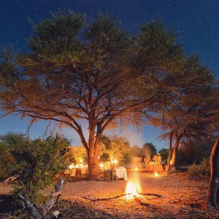 - Spot herds of zebra, wildebeest, and predators on arrival in Makgadikgadi Pans National Park, with family-friendly safari activities at Leroo La Tau.