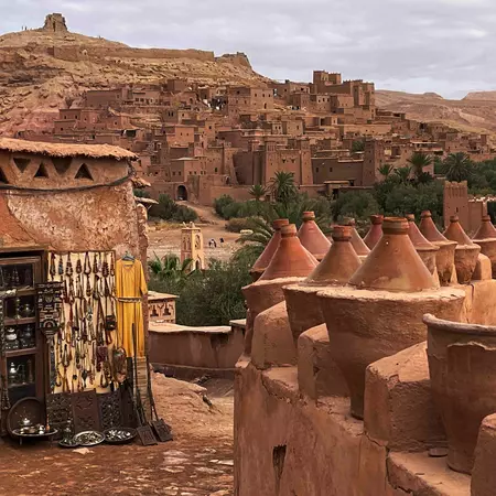 After breakfast, enjoy the city tour of Marrakesh, the “Red City”, a majestic place filled with palaces, gardens, markets, and mosques. Upon arrival, you will first stand by the Koutoubia Mosque with its 282 ft minaret, an architectural landmark dating back to the late 12th century. You will continue to the 19th century stunning Bahia palace and discover the intricate work done by the local artisans to decorate this splendid home built by a powerful Vizir for his Harem. The building includes one hundred and fifty rooms, countless courtyards and interior gardens, a veritable labyrinth of corridors, a Koranic school, hammams, a harem, stables. From there we will start exploring artisan quarters and the colorful Souks to interact with the real life of Marrakech people. Continue to Dar El Bacha Museum, built in 1910 and was the residence of Thami El Glaoui, named Pasha of Marrakech by Sultan Moulay Youssef in 1912. It is one of the medina's finest examples of Riad architecture, dripping with Moroccan Zellige (colorful geometric tilework), intricate white plasterwork and heavy carved cedar-wood lintels. Before sunset we will be strolling in the square of which the city is so famed, Jemaa El Fna, where hundreds of locals and tourists come to spend the end of the day watching jugglers, dancers, fortune tellers, story tellers and traditional musicians. After the tour, head to your hotel to freshen up. When you are ready, transfer to a local restaurant in the medina to enjoy a typical Moroccan dinner with entertainment. After the dinner, back to your hotel for overnight.